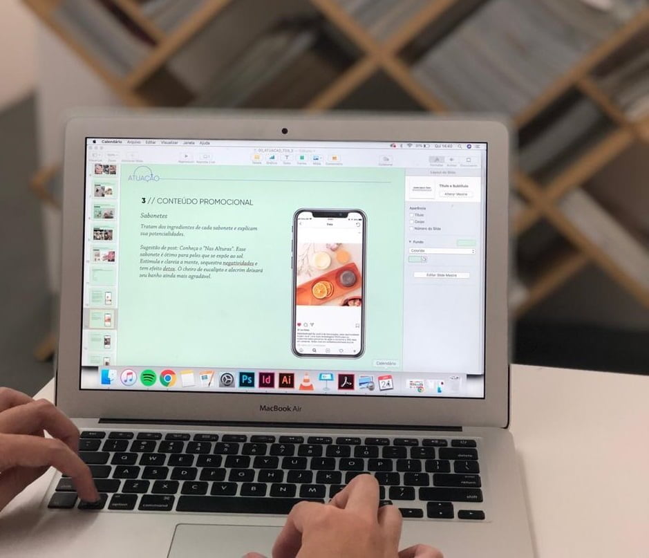 Na foto, trabalho feito para uma empresa de cosmética natural.
