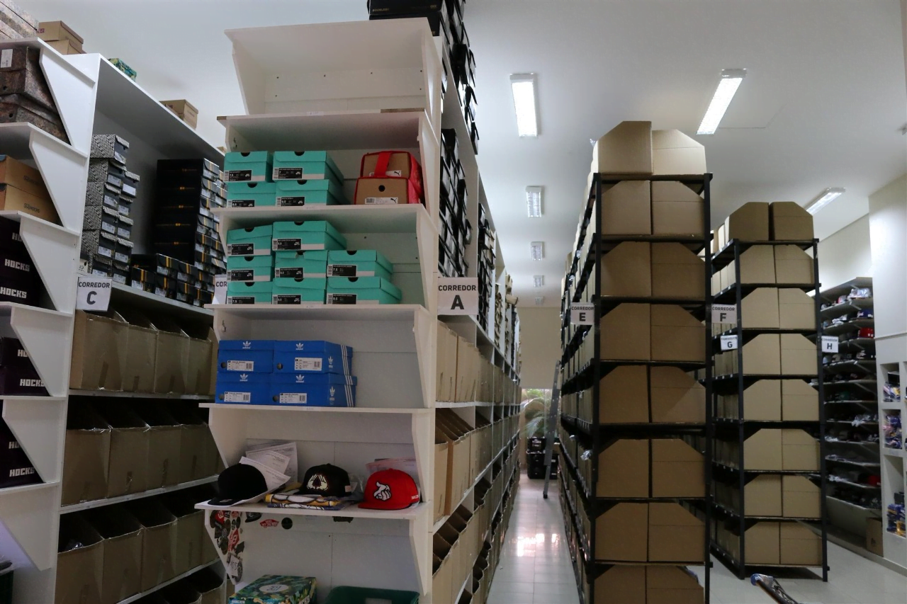 Parte do atual estoque da BR Shop: a espera da mudança para o prédio novo, de 2.300 metros quadrados.