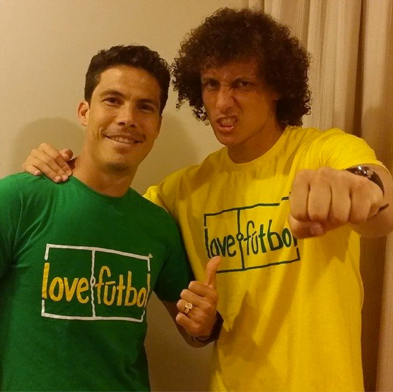 Golaço na Copa: como embaixador da love.fútbol, Hernanes (com David Luiz na foto) deu visibilidade ao projeto.