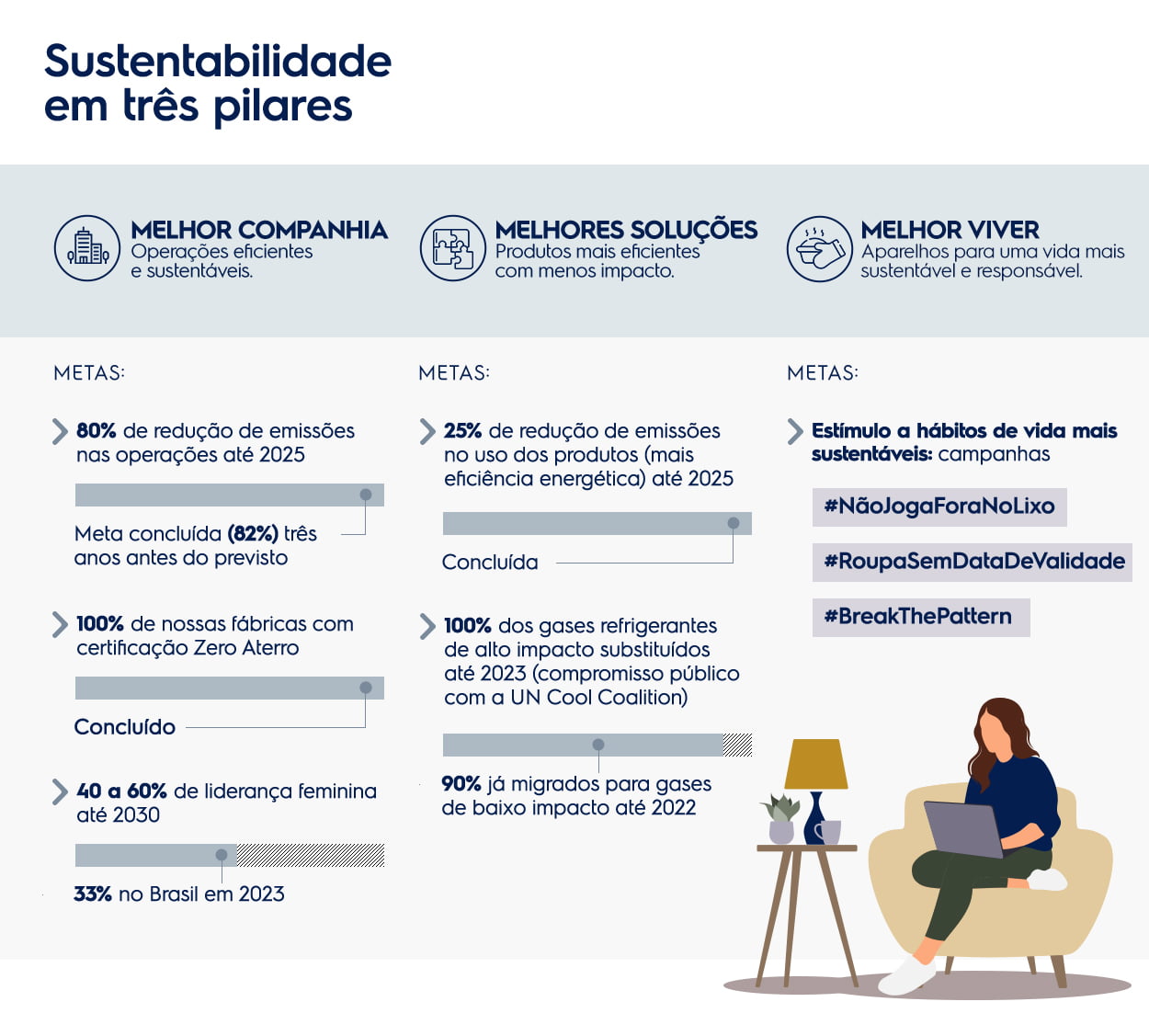 O primeiro dos três pilares deste novo desenho, “Melhor Companhia”, está ligado ao processo produtivo industrial e à relação da empresa com as comunidades, colaboradores e fornecedores. A proposta é produzir de maneira limpa, com eficiência de recursos, responsabilidade e respeito à diversidade e aos direitos humanos.