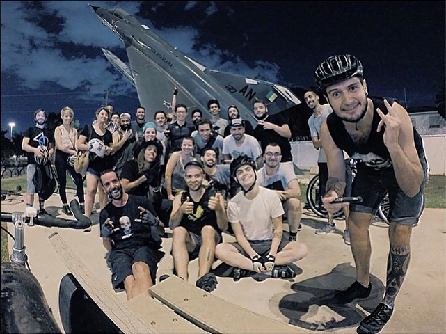 O empreendedor no modo ciclista ativista: de camiseta branca, à frente do grupo de amigos (foto: Murilo Grancieri).
