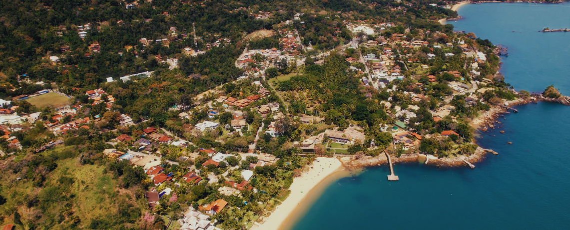 Adensamento de residências de alto padrão na faixa costeira de Ilhabela (crédito da foto: João @zerodozedrone).
