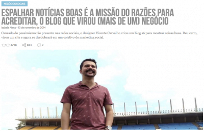 Quem diria que quase três anos após Vicente Carvalho conversar com o Projeto Draft, o dono da padaria onde foi realizada a entrevista se tornaria seu sócio do Razões para Acreditar, um site que só mostra notícias inspiradoras e que se tornou sustentável após começar a oferecer às empresas seu know-how de contar boas histórias.