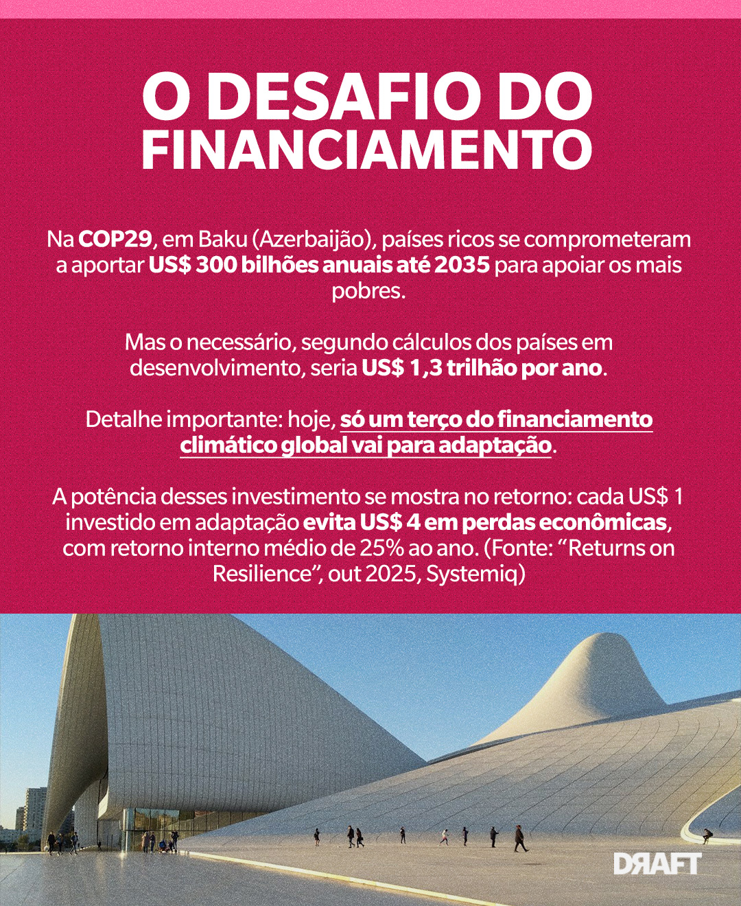 Secas prolongadas, enchentes recordes, ondas de calor cada vez mais intensas. O clima do planeta já mudou e seus efeitos estão cada vez mais visíveis. Diante desse cenário, o mundo precisa ir além de reduzir emissões: é preciso aprender a se adaptar às novas condições.