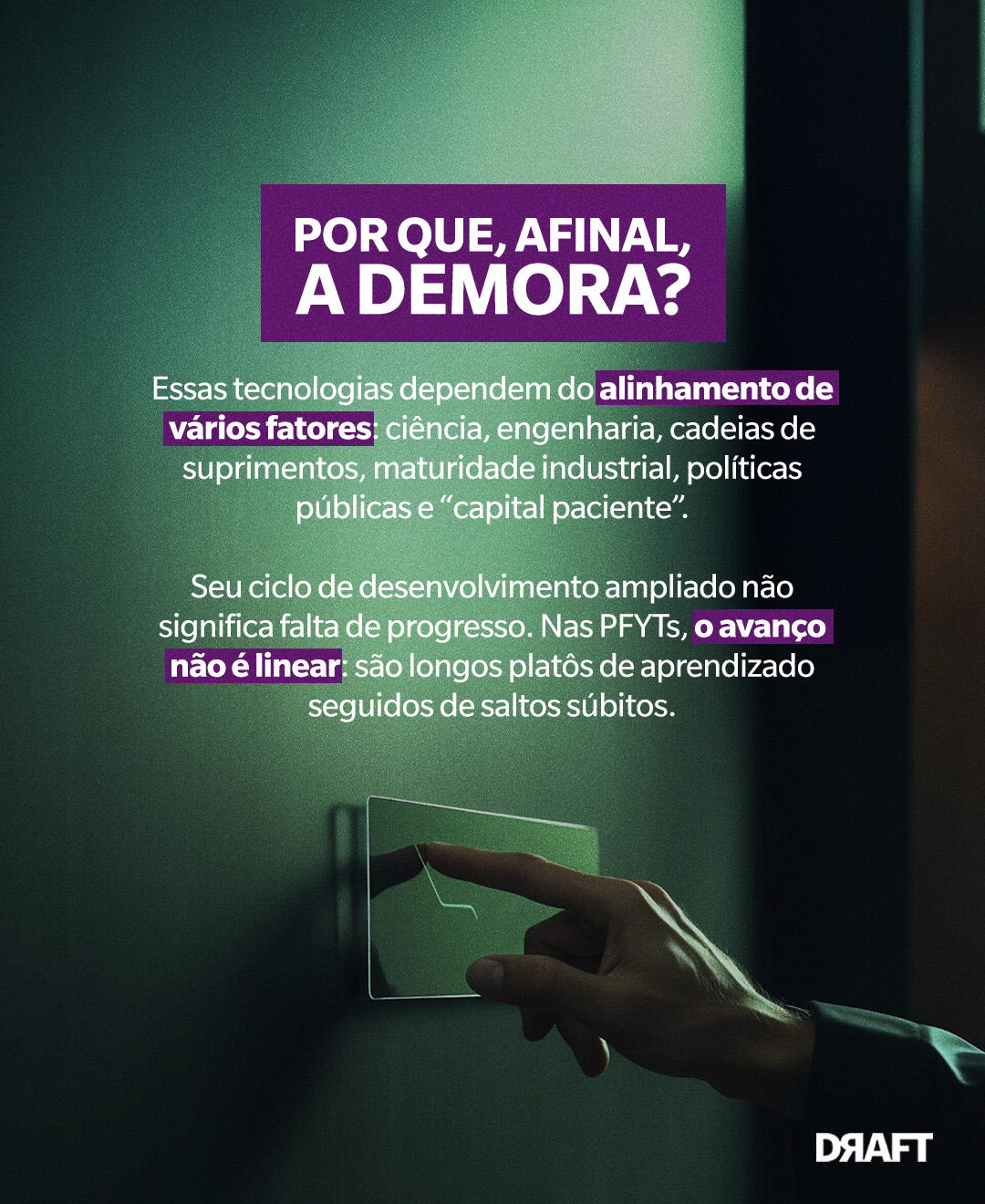 Confira, no carrossel abaixo, por que essas tecnologias demoram tanto para serem lançadas, quais desafios enfrentam e como geram valor mesmo antes de chegar ao mercado.
